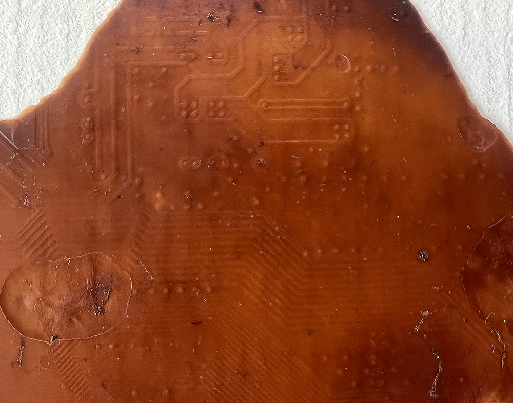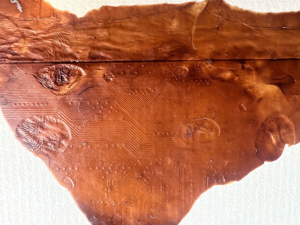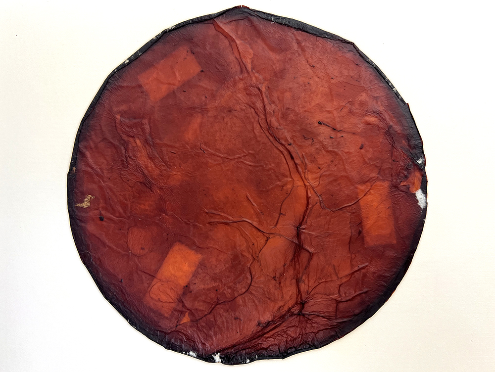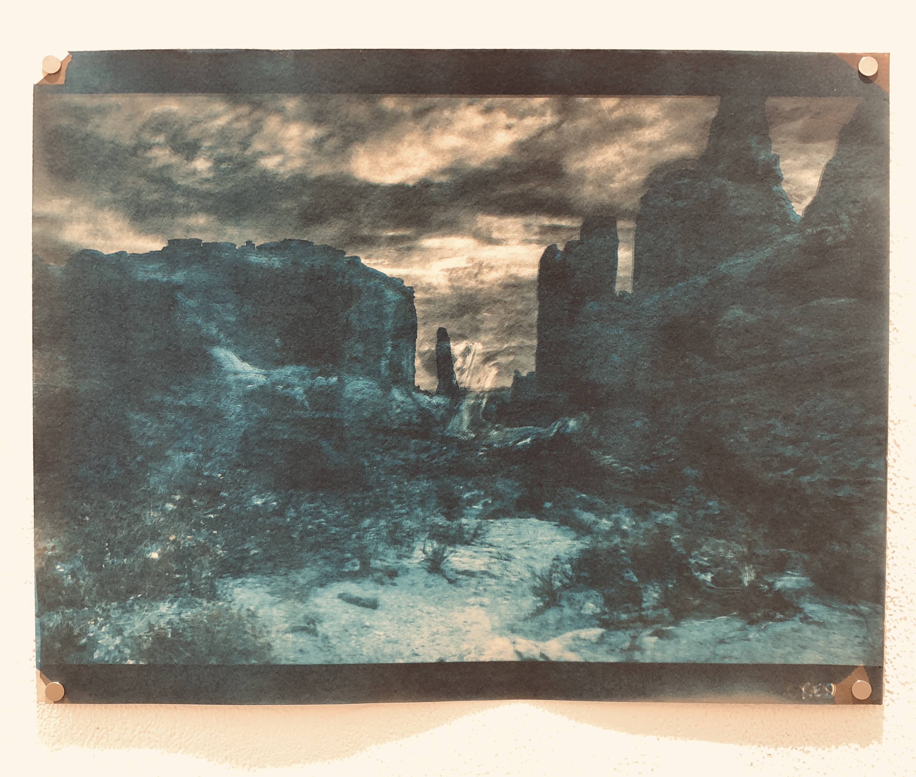 clarity (2025) - onion skin-toned, beet emulsion anthotype, found paper, and handmade paper made from completed science and math homework. Perspective shift (2025) - duo-tone cyanotype, toned with green tea, printed at Melanie King's studio (2025). Soil chromatography (2025) made with compost from Martha Gray's composted bioplastic photos. By Billy Tucker