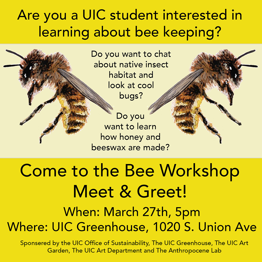 In March 2024, the AL/Art Garden / Plant Research Laboratory at UIC will welcome bee enthusiasts. We're excited to explore topics such as bees, beekeeping, honey production, and the use of beeswax in art. All are welcome to join!