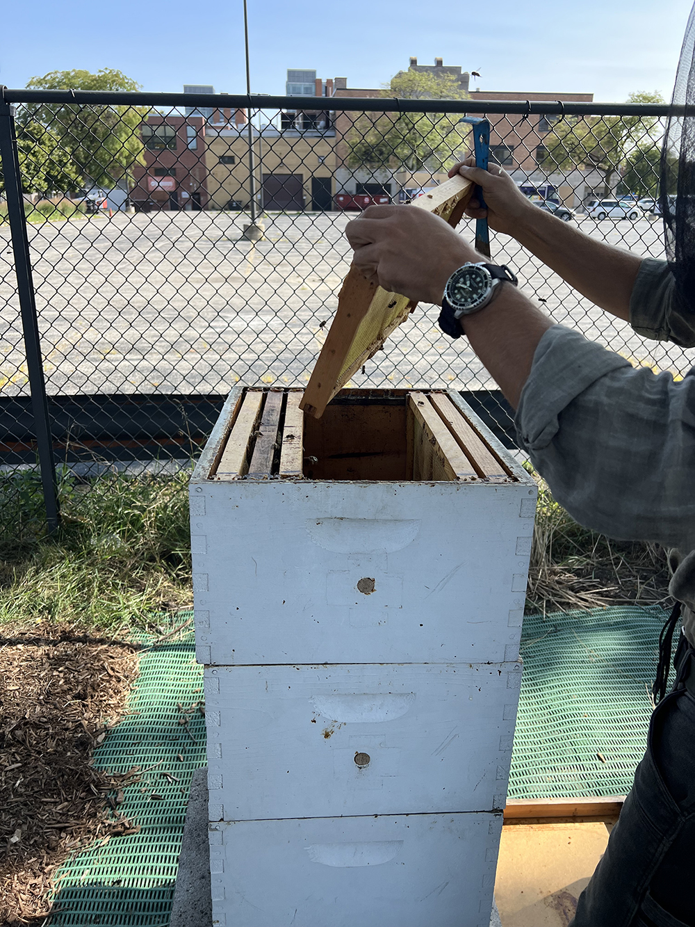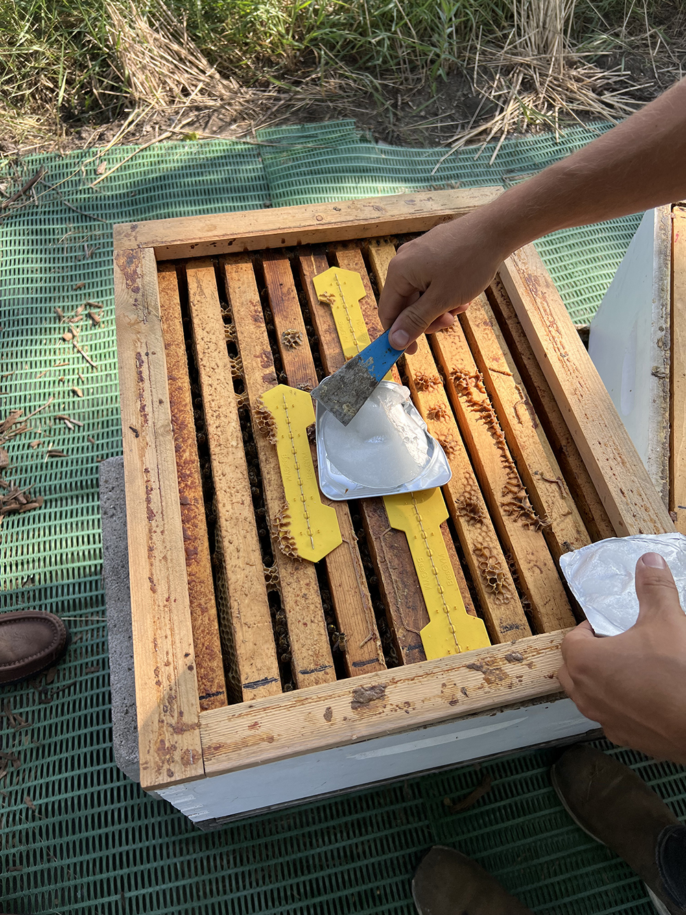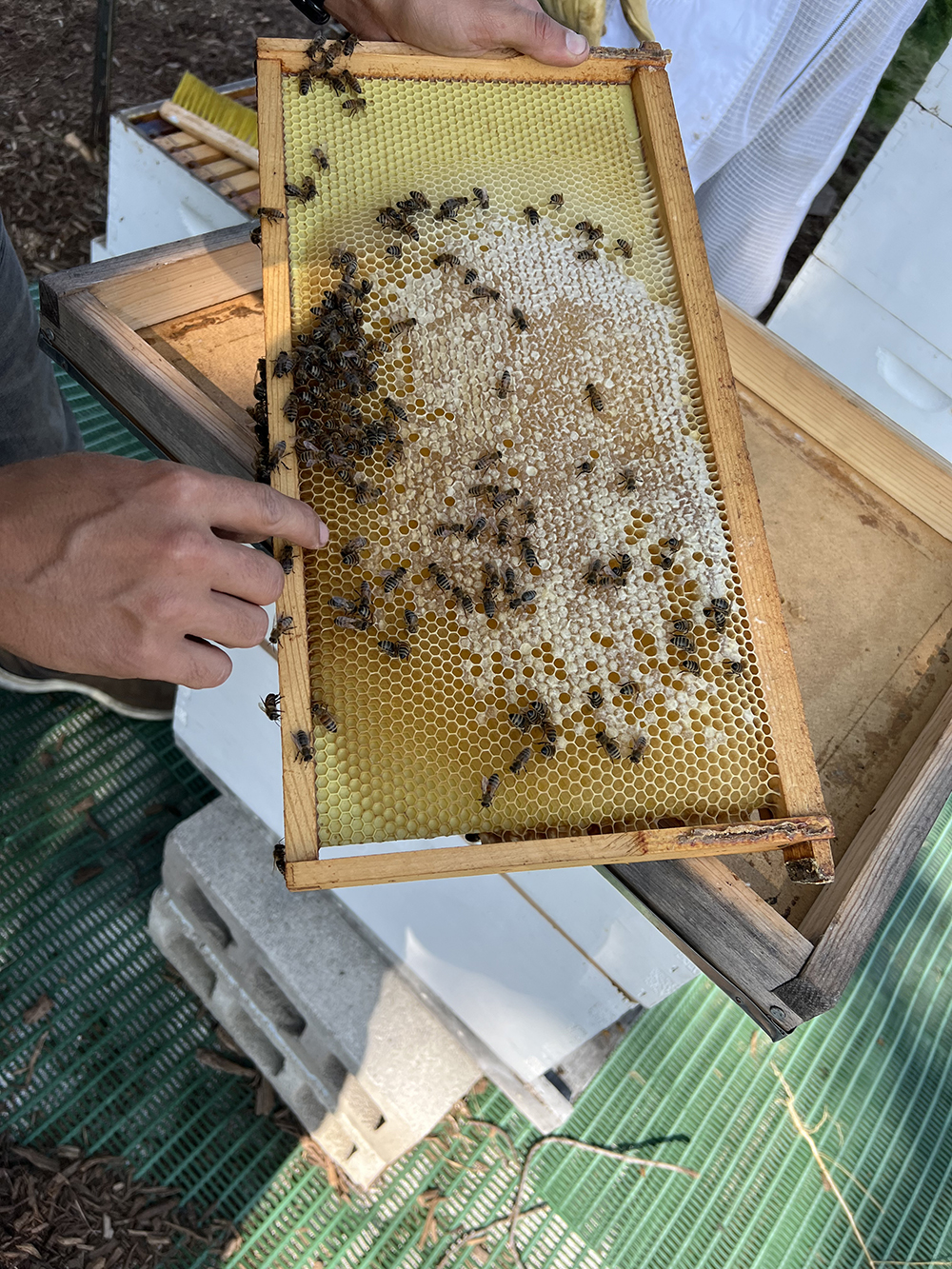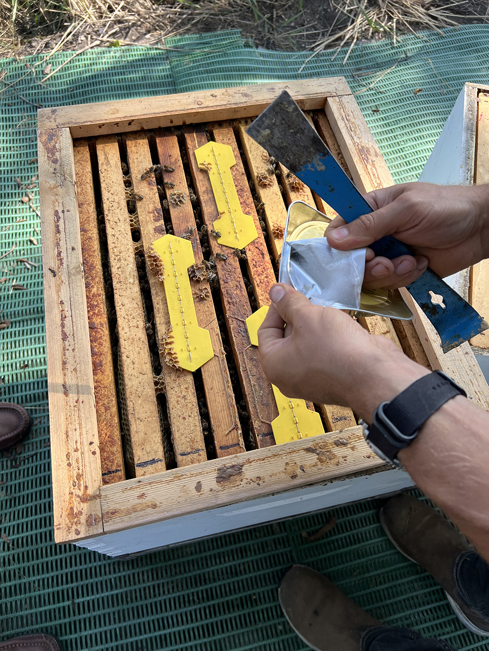 August 2024, check in: determining how much honey there is to harvest and potentially treating one of the hives with Thyme oil for their varroa mites.