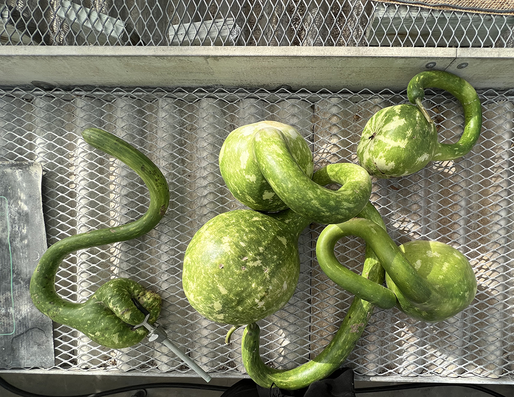 In 2022 we were able to grow our first plants at the Plant Research Laboratory at UIC. Gourds, Loofah and Red Beets. The Art Garden is a space for collaborative research and supports the exploration of alternative methods of art making by growing and utilizing sustainable materials. This project generates awareness of the benefits and accessibility of natural fibers and fungi, foster an understanding for sustainable materials and cultivates cross-disciplinary connections within the university and beyond. By bridging art and science processes within sustainable methodologies, we can form the base of explorations into questions of, but not limited to, sustainable cities and the built environment, recycling and waste economies, and learning the language of nature. Connections are made between traditional craft histories and contemporary concerns about ethical use of resources.